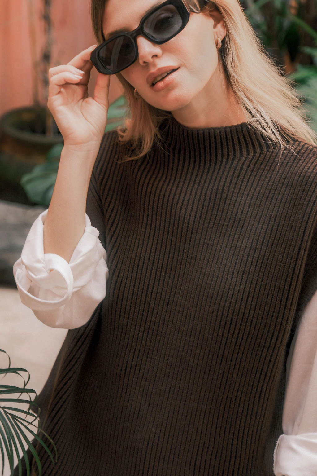 Chaleco reversible. Combinación de color: chocolate y negro.