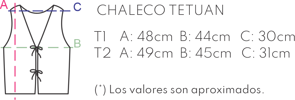 Creamos en una de nuestras telas preferidas, Lino, un conjunto de chaleco ( con tiritas para atar delante) y pant (con tirsa para cruzar a los costados, debajo).
