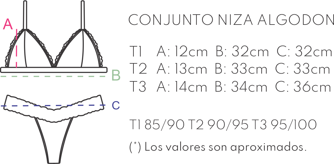 Un clasico que todas queremos para nuestra lenceria de todos los dias, triangulito fijo, regulable, pero con el detalle en puntilla, que lo hace distinto, y super sexy! El color negro con el detalle de elastico de razo lo hace super delicado, y distinto de un conjunto de algodon clasico.
