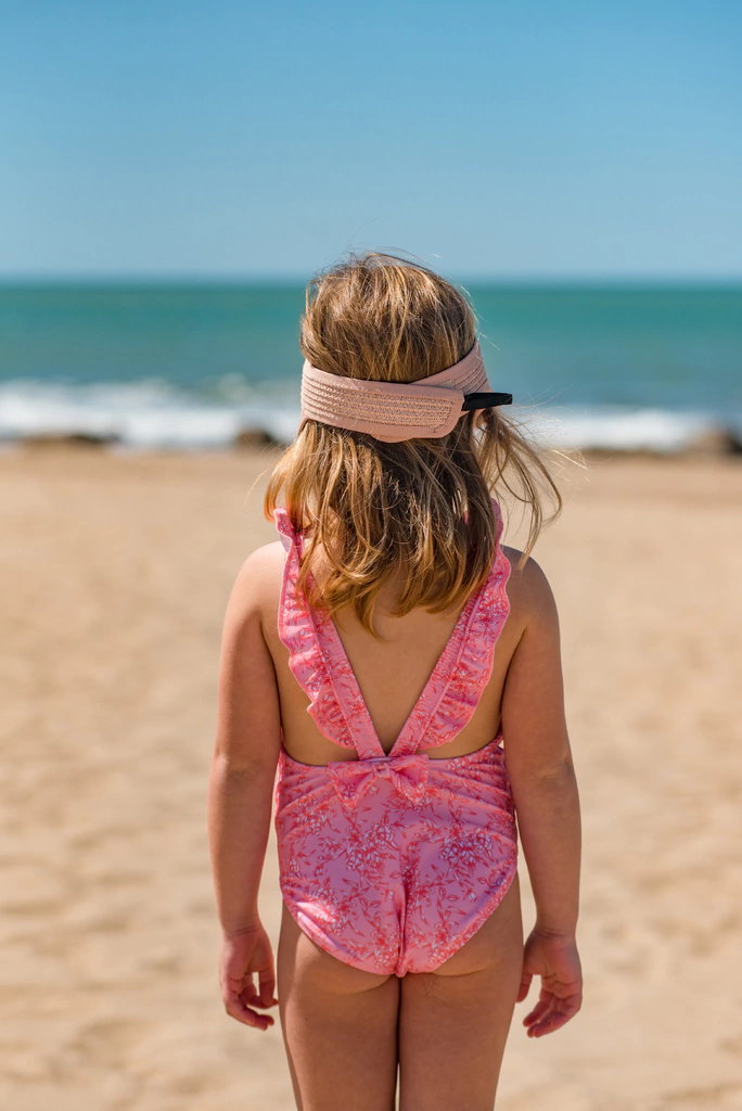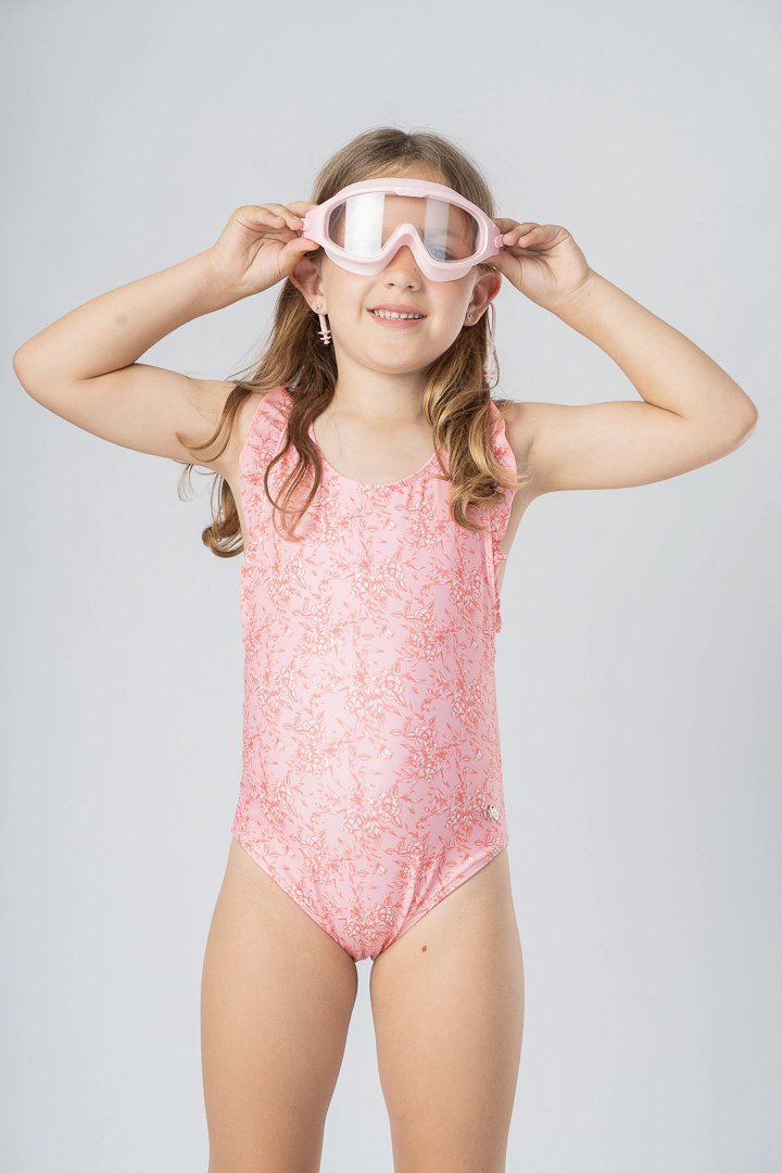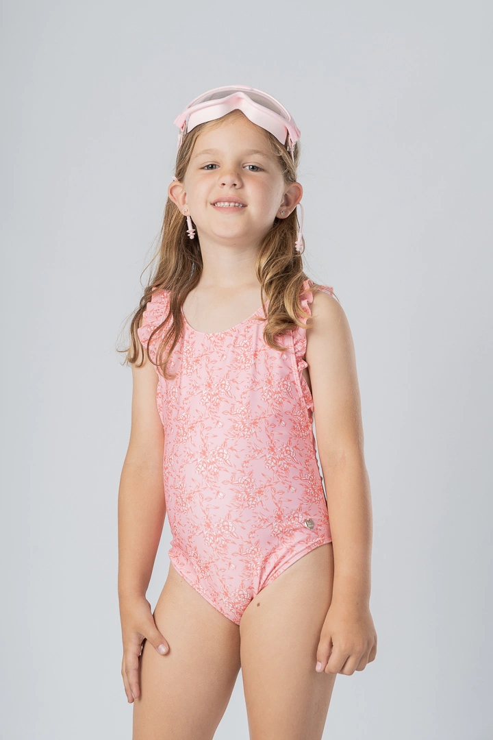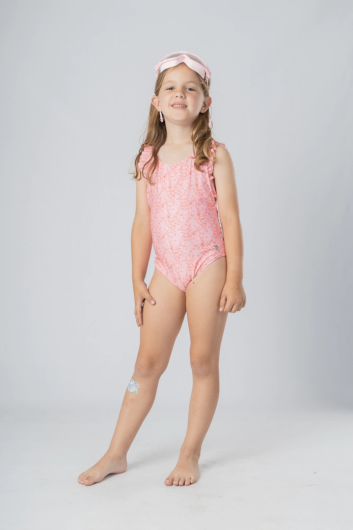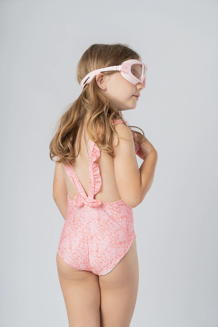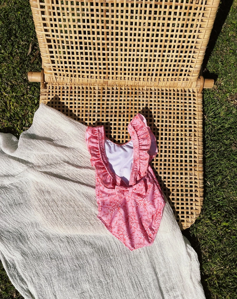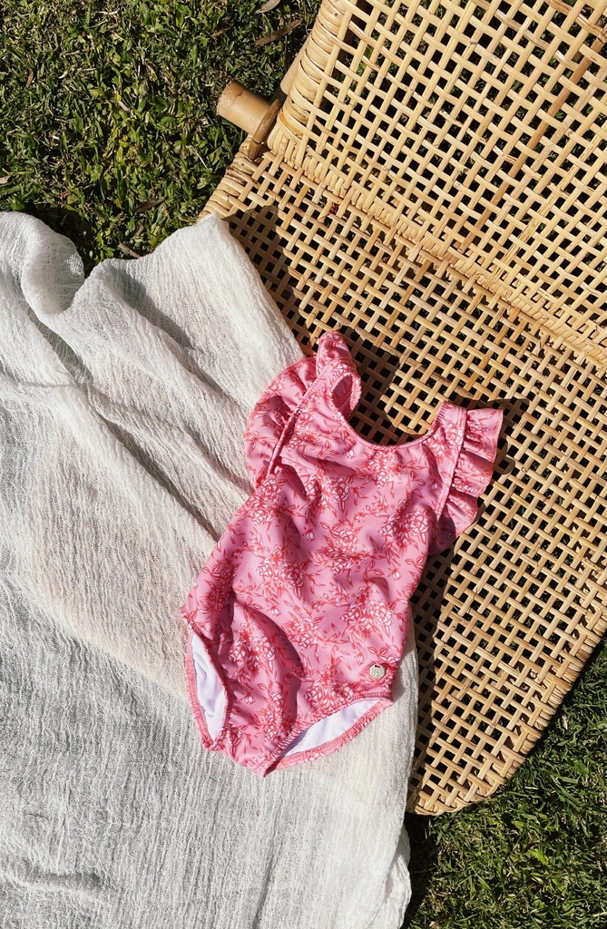Mallita enteriza mini, con volados en los breteles y con el detalle de moño como terminación atrás.