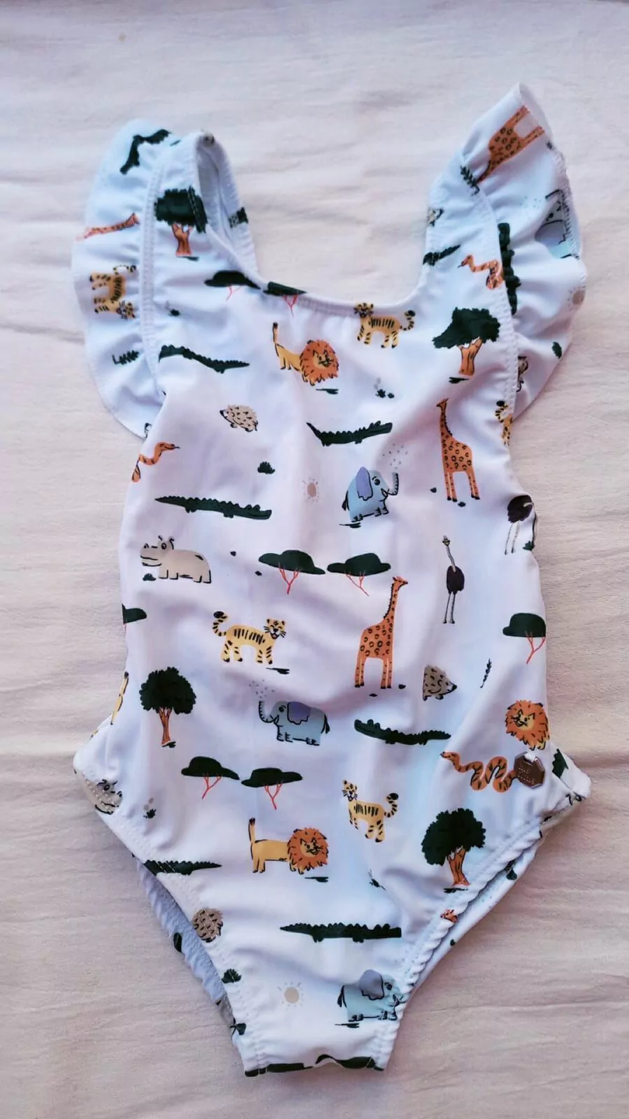 Mallita enteriza mini, con volados en los breteles y con el detalle de moño como terminación atrás.