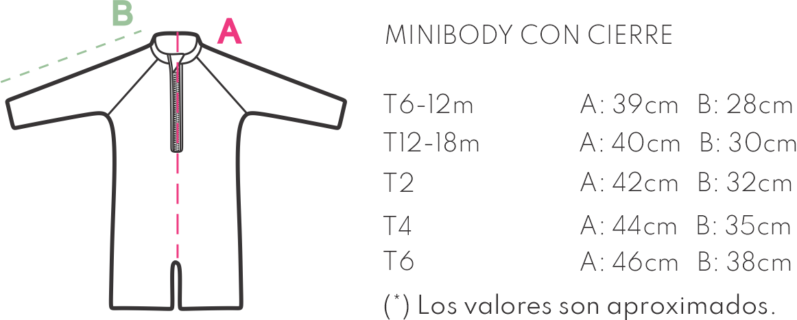 Nuestro mini body viene con mangas largas y cierre en la parte delantera.