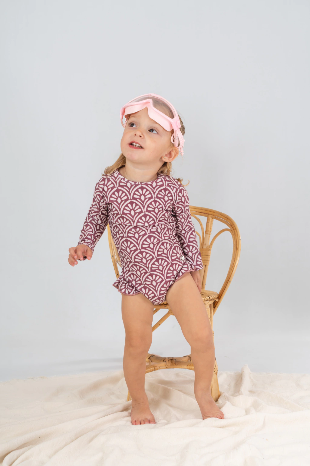 Nuestro mini body viene con mangas largas, botones pañaleros por debajo y lazo en la espalda para mejor agarre.