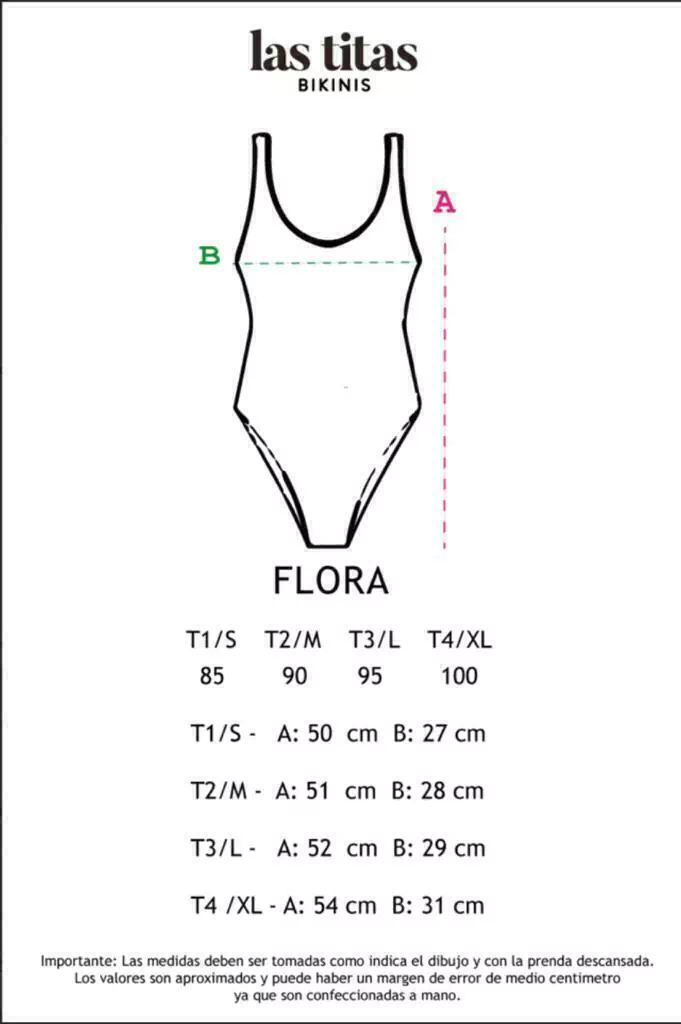 La One Piece Flora es un traje de baño enterizo, bien cavado, que no puede regularse, es fijo. Muy cómodo y de buen agarre. No tiene corte para el busto y no tiene espacio para almohaditas. Disponible en less y en vedetina.