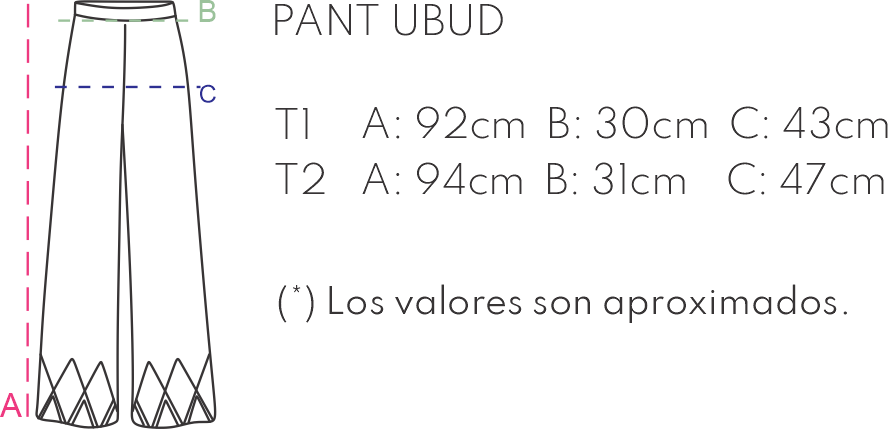 Pant tejido a maquina, con dibujo exclusivo de la marca inspirado en los textiles balineses.