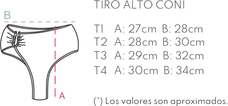 Tiro alto con accesorio en U. Este modelo es una semi vedetina. Su molderia estiliza las piernas y resalta la cintura. Recomendamos elegir un talle menos de lo normal.