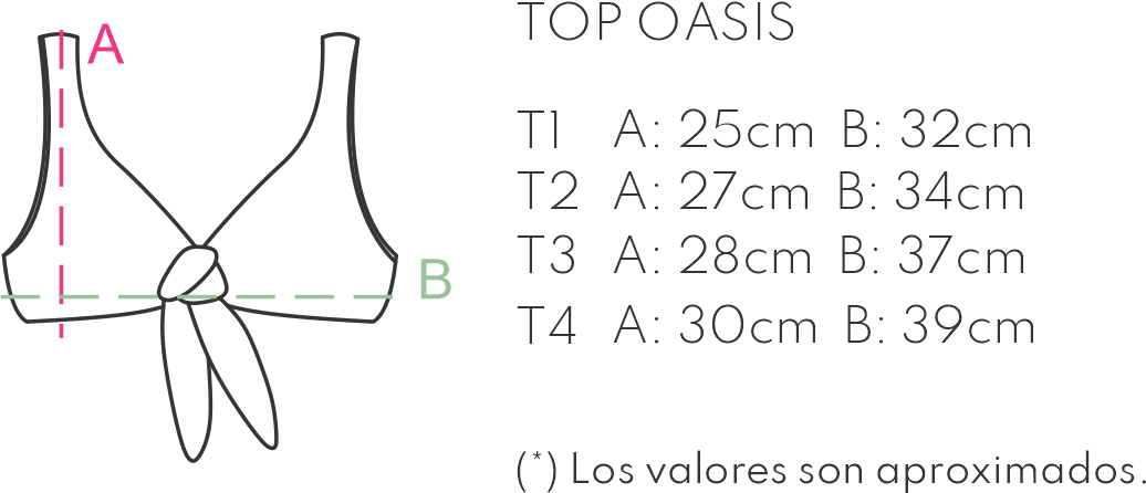 Top entero reversible (lycra lisa de un lado y lycra texturada del otro, se puede usar de ambos lados). Se ata delante.
