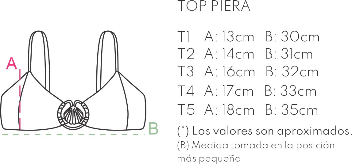 El corpiño Piera es un top con delantera unida por accesorio Zamac, la cual le da estructura al mismo